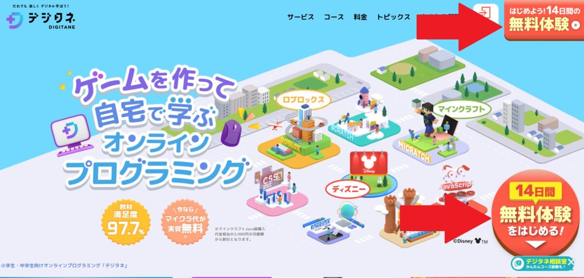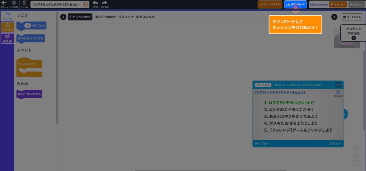 - 体験できるのは「マイクラッチ」「ディズニー」「ロブロックス」の各コースの最初のミッション
