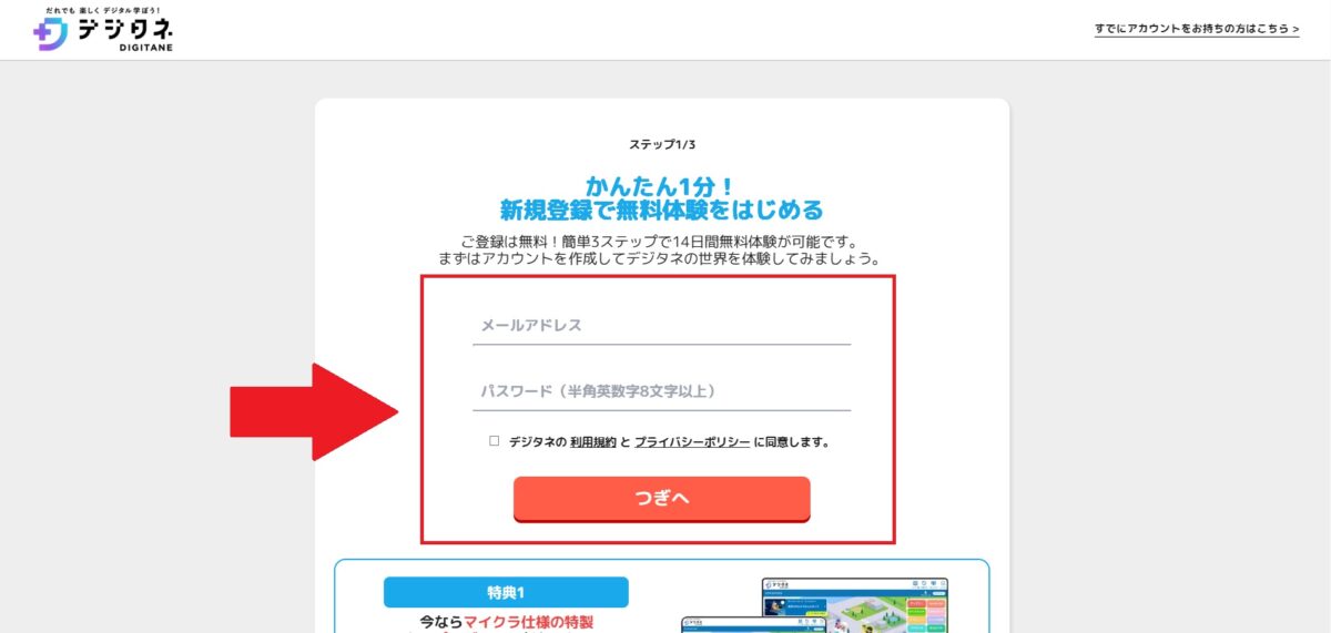 デジタネの無料体験をはじめる準備が整いました。
