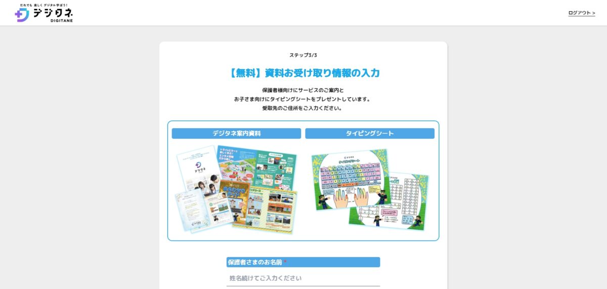 ステップ④:デジタネ案内資料とタイピングシートプレゼント確認